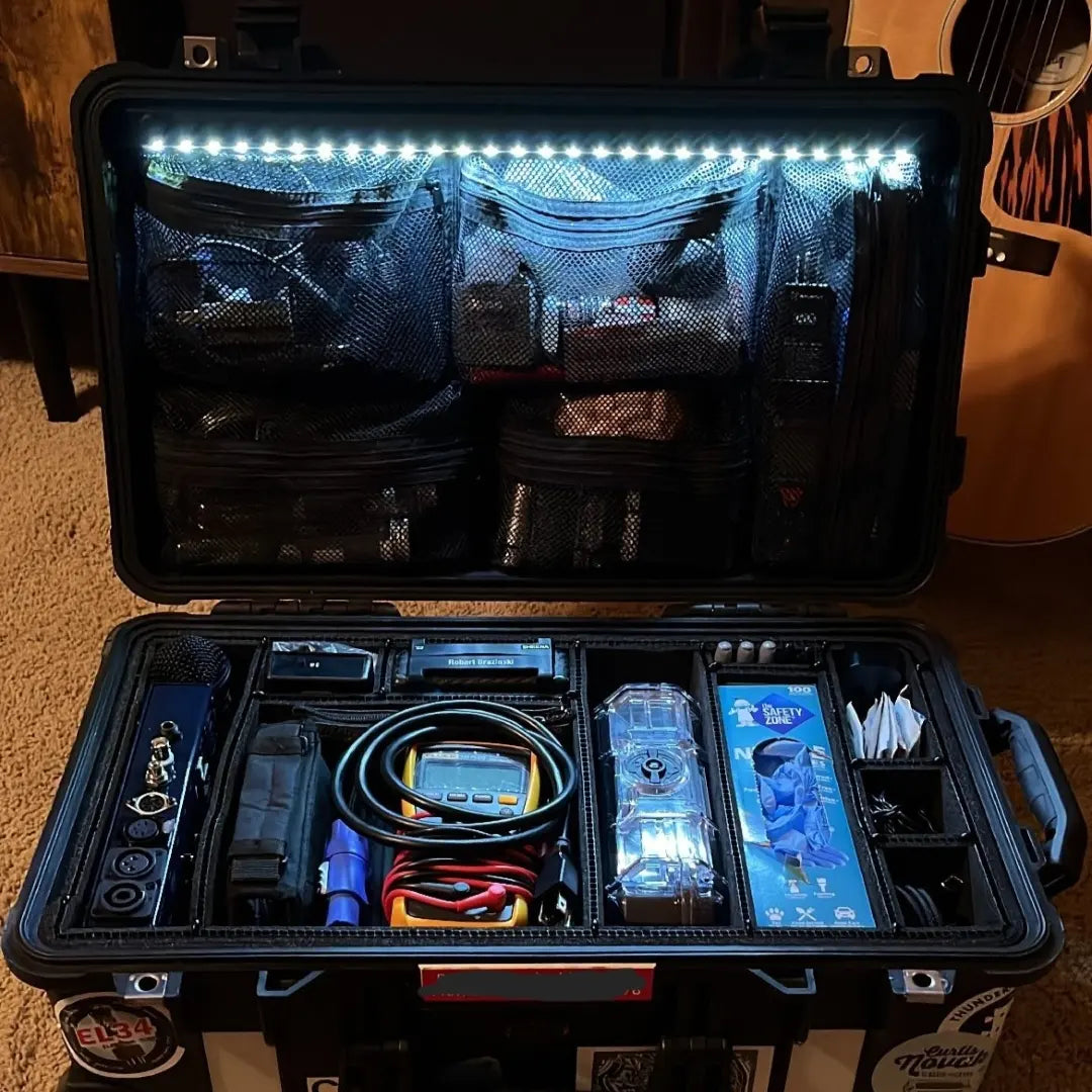 LidLite is where touring experience inspires innovation! After years of firsthand touring experience, we understand the need for a seamless lighting solution for the revered Pelican 1510 - the unspoken industry standard workbox for technical professionals. Through extensive trial and error, rigorous prototyping, and thoughtful design enhancements, LidLite has emerged as the ultimate lighting companion, now available for order!